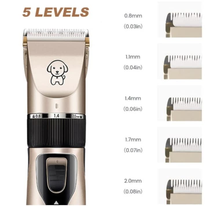 Our clipper uses a fixed stainless steel blade and ceramic moving blade which is sharp enough to cut through all types of dog fur in no time. The ceramic blade also serves as a protective layer to make sure your dog never gets cut.