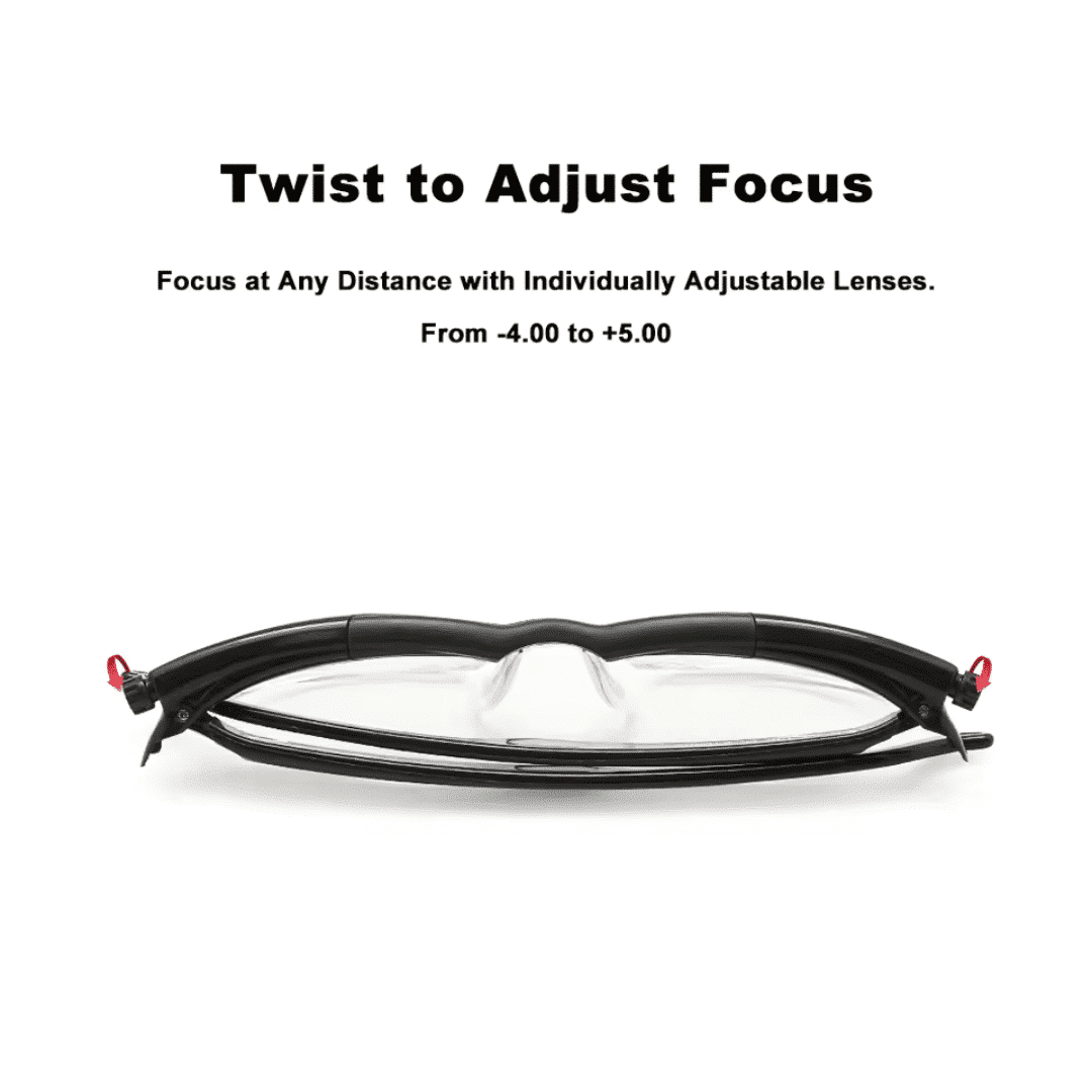 ClearView Pro Glasses operate using a sliding lens system that adjusts the curvature of the lenses through a simple dial mechanism located on each side of the frame. By turning these dials, wearers can manually control the amount of fluid contained between two flexible membranes in the lenses. This adjustment alters the lens shape: