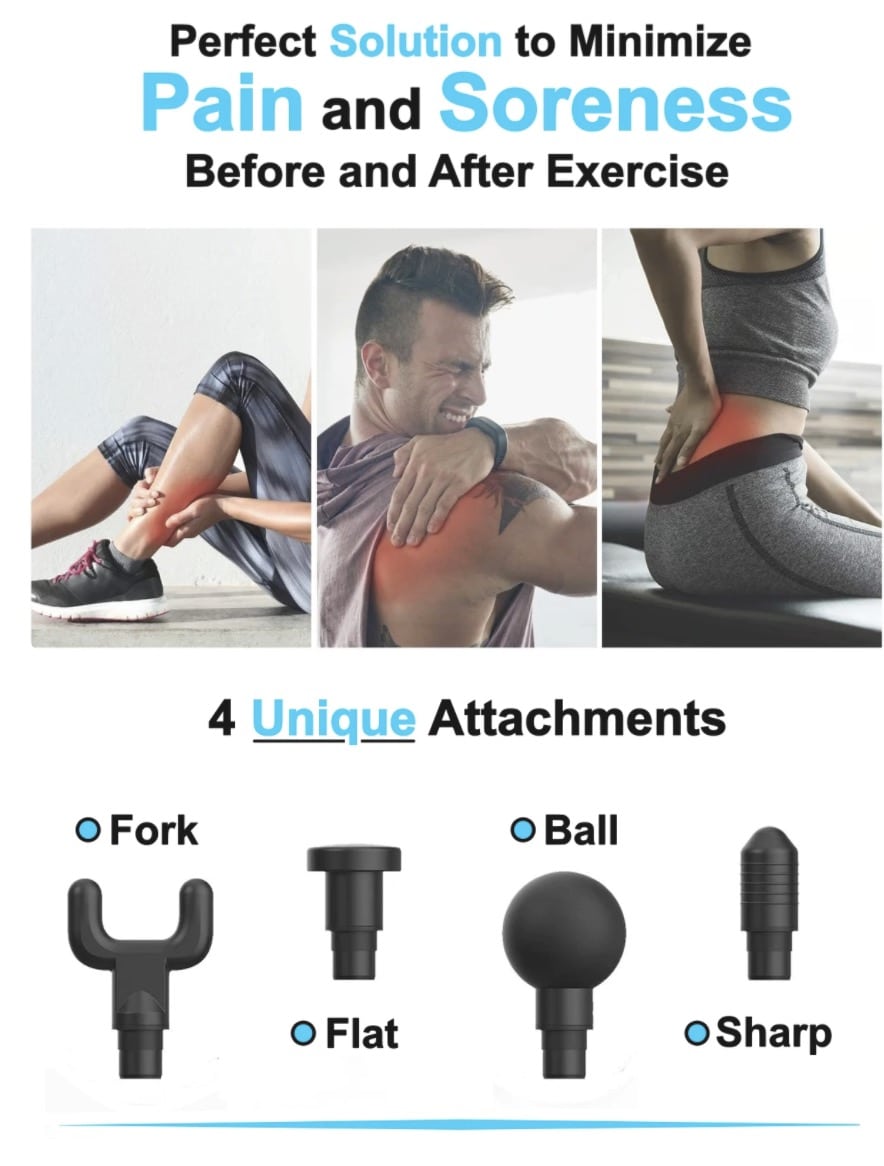 Imagine a silent massage gun with multi-speed functionality (3 Speeds) that can operate at up to 4,000 hits per minute (Strongest on the Market) with 65 lbs of force that lasts up to 6 hours at a time..