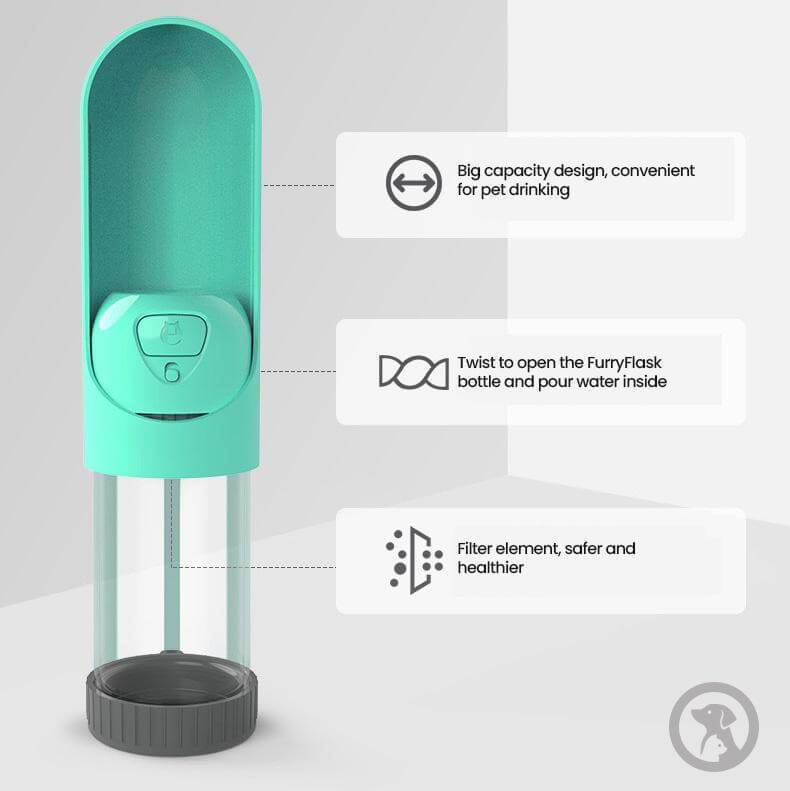 The FurryFlask portable water bottle is made from FDA approved BPA free materials that are super durable, which makes your pet enjoy safe & pure water. FurryFlask’s are also super easy to wash. You can hand-wash it or just put it in the dishwasher… Just don’t forget to remove the filter first.