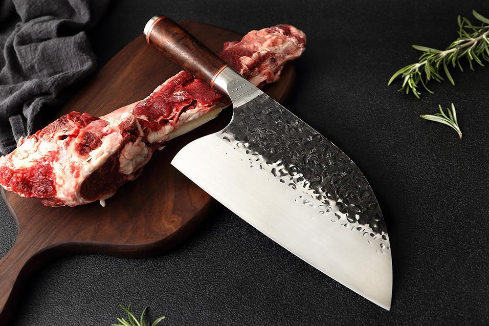 Mr. Teuchi™ Limited Edition Hand Crafted Serbian Knife is handcrafted from high-carbon steel using ancient Far Eastern techniques, made by experienced blacksmiths, cut and chop anything with this versatile hardened carbon steel blade. Whether it is vegetables, meat or even wood, it cuts effortlessly through everything. This will really be the last knife you will use! It has the perfect weight, feel, balance, finish and sharpness, even for the outdoors!