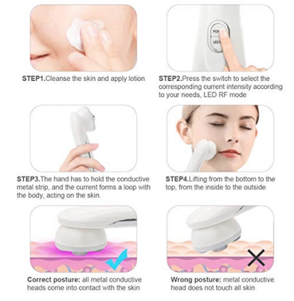 ✔ Includes detachable microcurrent electrodes. These electrodes emits extremely low-voltage electrical currents (hence ‘micro’ current), which mirror your own body’s electrical currents, on a cellular level to repair damaged skin and stimulate collagen and elastin production.