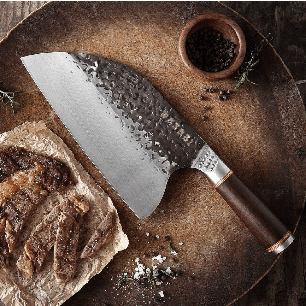 Tatara Evolution™ Chef Knife is handcrafted from high-carbon steel using ancient Far Eastern techniques, made by experienced blacksmiths, cut and chop anything with this versatile hardened carbon steel blade. Whether it is vegetables, meat or even wood, it cuts effortlessly through everything. This will really be the last knife you will use! It has a perfect weight, feel, balance, finish and sharpness, even for the outdoors!