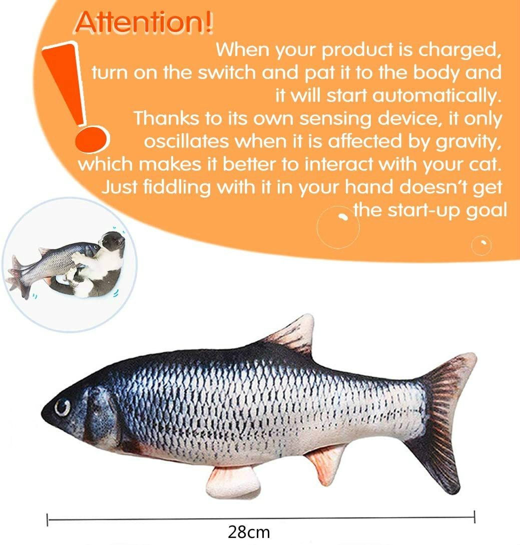 - Reduce Anxiety: Fish built-in touch sensor with USB charging will flop or moving automatically, stimulates your cat to play.