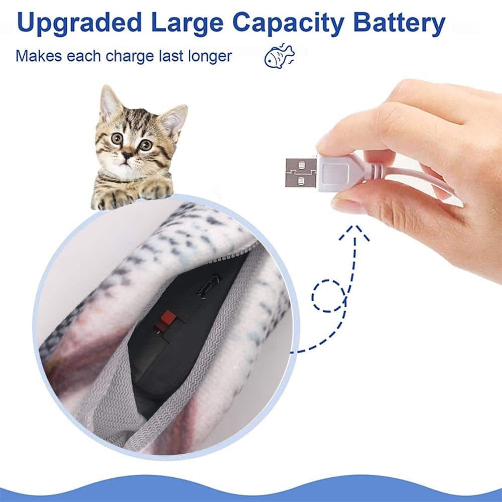- USB cable is included – the fish toy can be charged through power banks, laptop USB port, and charge adapter