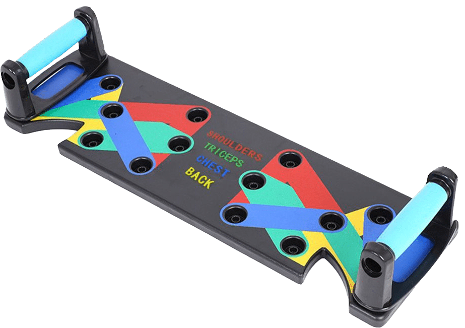Tube Fit Multi-Function Push-Up Board™ is a unique and stable platform that comes with two comfortable handles and color-coded holes.