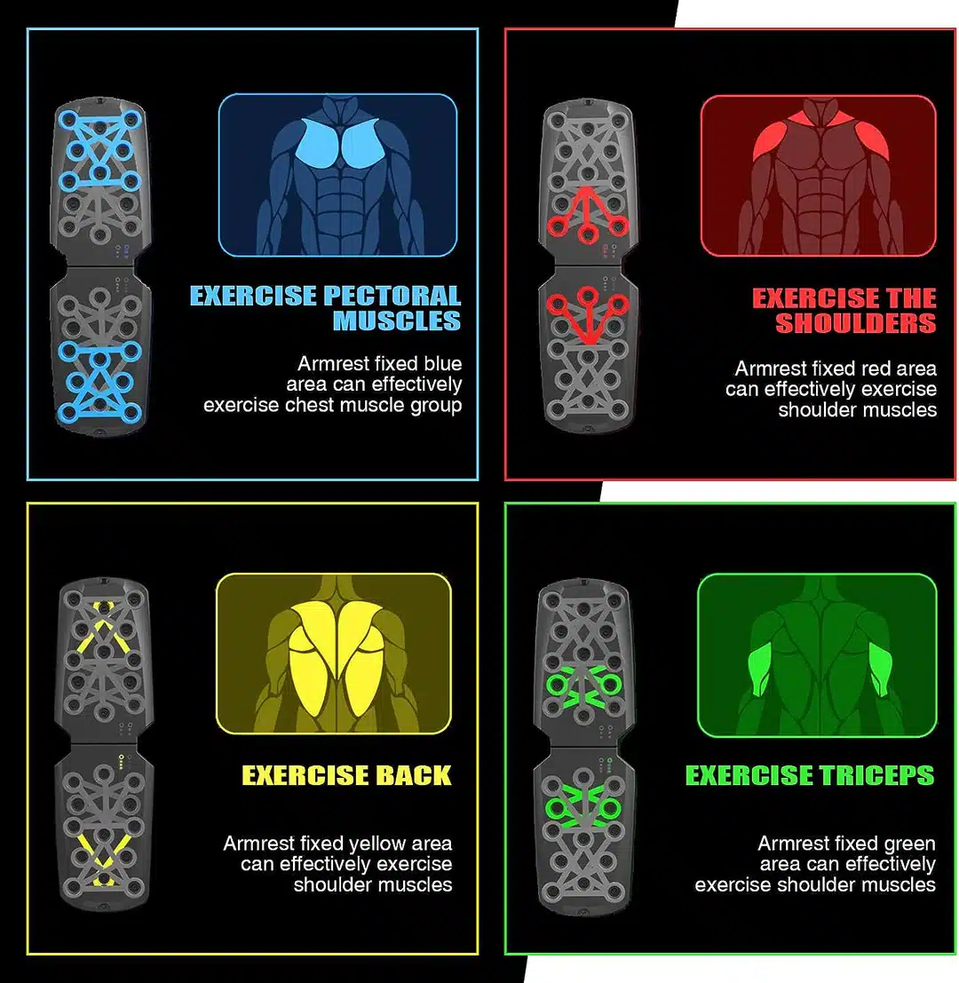 The detachable handle grips are specifically designed to target different muscle groups (chest, shoulder, triceps, biceps, and back) while engaging your core. UltraFlexPress is scientifically proven to activate 30% to 50% more muscles to maximize your full body workout. Burn calories and build muscle anywhere with our UltraFlexPress Training Board