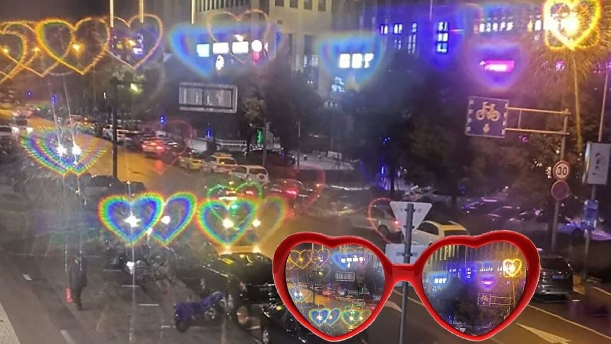 - ?Heart effect diffraction glasses: This is a kind of magical glasses, wearing it at night, the lights instantly turn into the shape of loving you. Stand in Front Of A Light Source And Look Head On At A Point Of Light. Our Glasses Will Make The Lights Explode Into Rainbow Hearts.